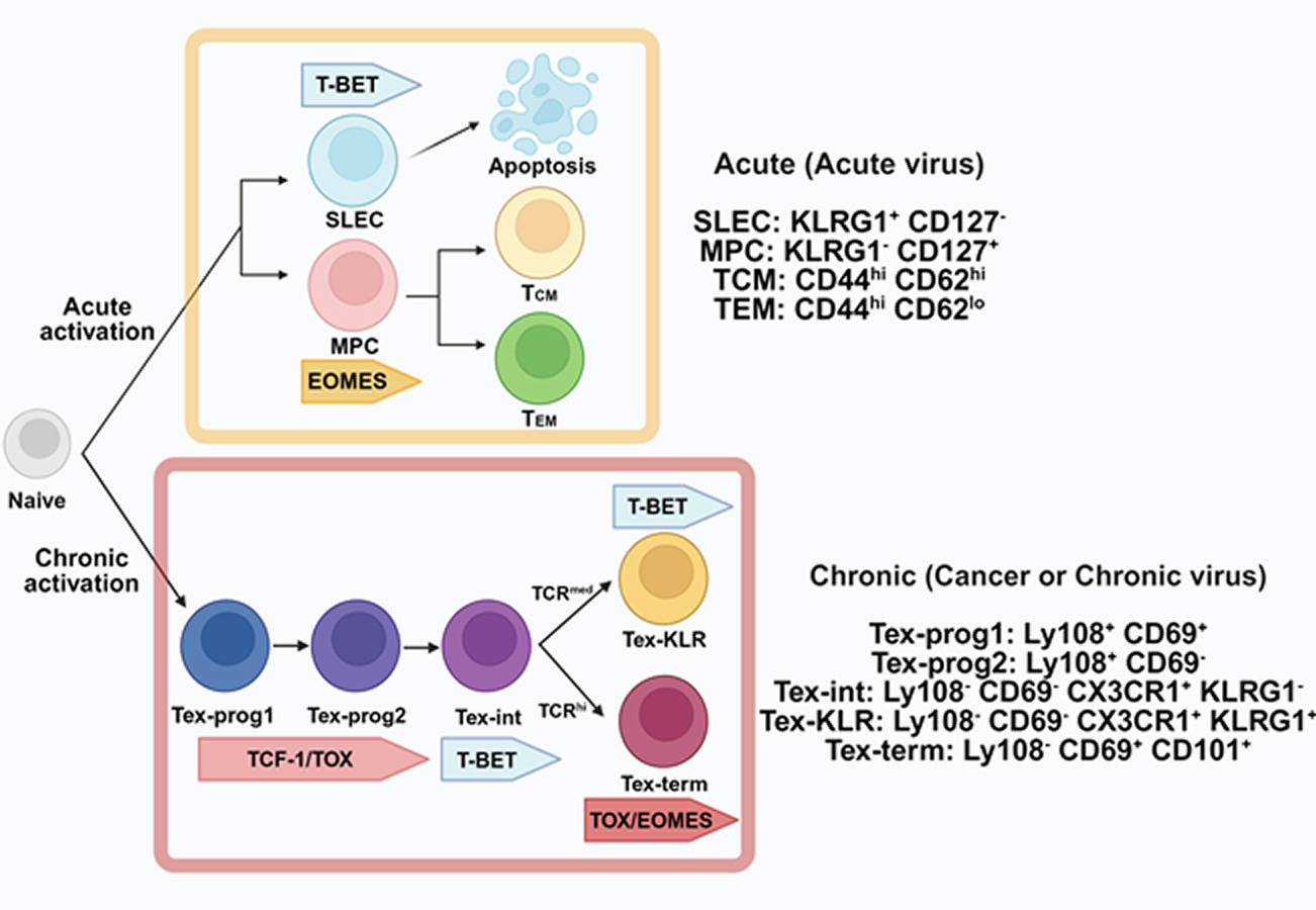 <만성 TCR 작극에 의한 탈진 T 세포 분화 경로 모식도>