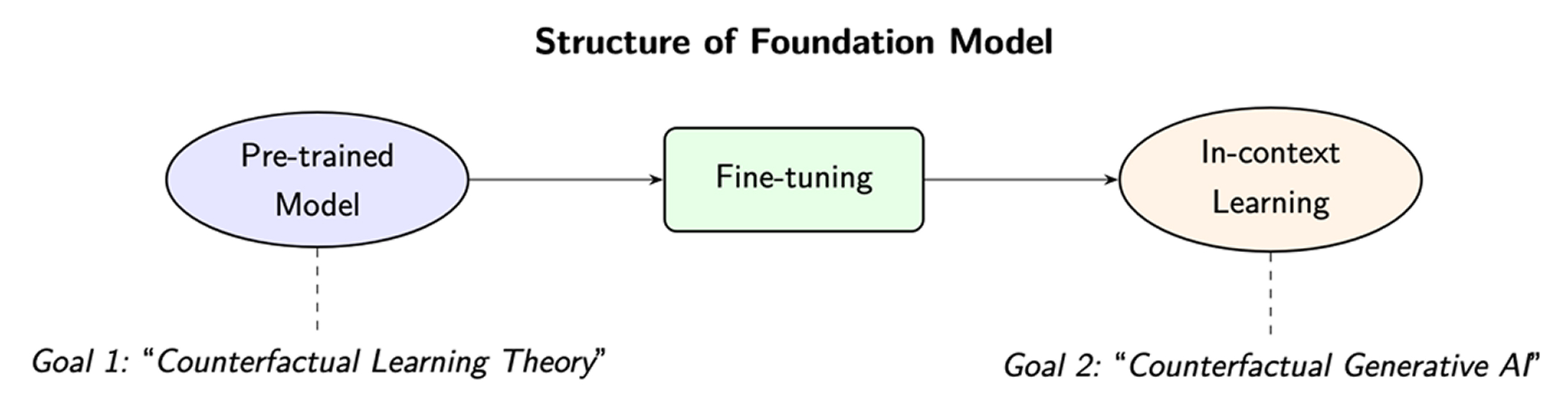 아울러 이러한 기반 위에, 파운데이션 모형의 핵심 모듈인 사전학습(pre-training)과 문맥 내 학습(in-context learning)에 반사실적 추론 능력을 부여하는 통합 이론을 확립합니다. 이를 통해 반사실적 학습 이론과 반사실적 생성형 인공지능 등 핵심 구성요소가 파생되며, 갑작스런 분포 변화나 관측 공백 영역에도 강건한 추정을 제공합니다. 결과적으로 보편적 기계학습의 적용 범위와 일반화 효율이 크게 확장되어, 맞춤형 신약 개발, 최적 복지정책 설계, 새로운 과학적 발견, 개인 맞춤형 헬스케어 등에서 비용 효율성과 속도를 크게 개선할 수 있습니다. 더 나아가 사실 기반의 공정하고 비편향적인 의사결정을 지원함으로써, 인간의 합리적 추론을 보조하는 실질적 범용 인공지능(AGI)으로 한 걸음 더 다가가는 기반을 마련합니다. 이는 향후 인공지능이 인간의 의사결정과 과학적 발견을 실질적으로 뒷받침하는 길을 여는데 있어 중대한 전환점이라 믿어 의심치 않습니다.